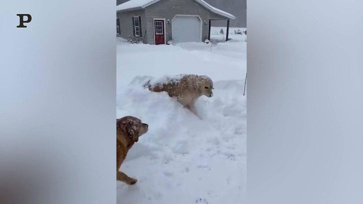 C’è qualcosa di più bello di una distesa di neve bianca? Questo bellissimo Golden Retriever, approfittando della grossa nevicata, si tuffa in una montagna di neve e gioca con il suo padrone, facendosi seppellire quasi completamente dal manto ghiacciato. Che divertimento!