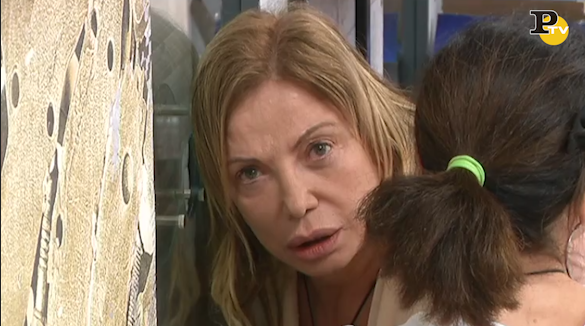 La Izzo non vuole che Malgioglio intervisti i suoi compagni e così parte la discussione tra i due. L’attrice infastidita da queste ormai famose “Interviste sui binari” di Cristiano, sbotta urlando “Tu non sei Ilary Blasi“.
