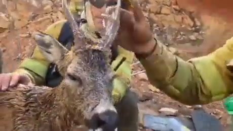 Un giovane cerbiatto viene salvato dagli incendi in Grecia grazie all’intervento dei Vigili del Fuoco, i quali si sono accertati che l’animale stesse bene dandogli acqua e attenzioni