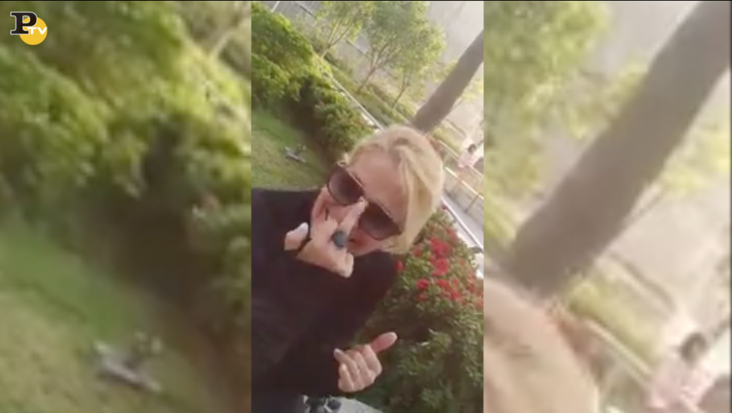 Nel video si vede la Parisi che si colpisce in più parti del corpo, fingendo di darsi, schiaffi, sberle, pugni. “Cosa stai facendo?” chiede una voce fuori campo… “Sto litigando con me stessa!” è la sarcastica risposta della Parisi che, ridendo (ma mica tanto) saluta tutti con un bel dito medio a favore dell’obiettivo del cellulare.