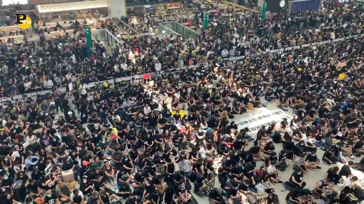 Impressionante l’occupazione dei manifestanti all’aeroporto di Hong Kong. Le autorità portuali hanno comunicato che tutto il servizio di check-in per i voli in partenza è stato sospeso. Dopo settimane di braccio di ferro, repressione e scontri il governo cinese accusa gli attivisti di “terrorismo”.