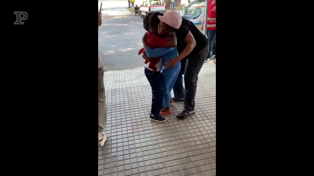 Il commovente e tenerissimo abbraccio tra i due gemellini di origine ivoriana, separati cinque mesi fa in Libia, e la loro mamma nel Cara di Isola Capo Rizzuto, in provincia di Crotone.