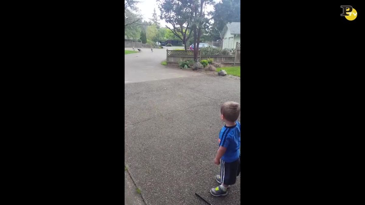 Cosa succede quando scopri che tuo figlio parla con i tacchini? Ma la storia non finisce qui! Oltre ad imitarne il verso, il bambino scambia due chiacchiere con i pennuti che gli rispondono. Vi strapperà un sorriso!