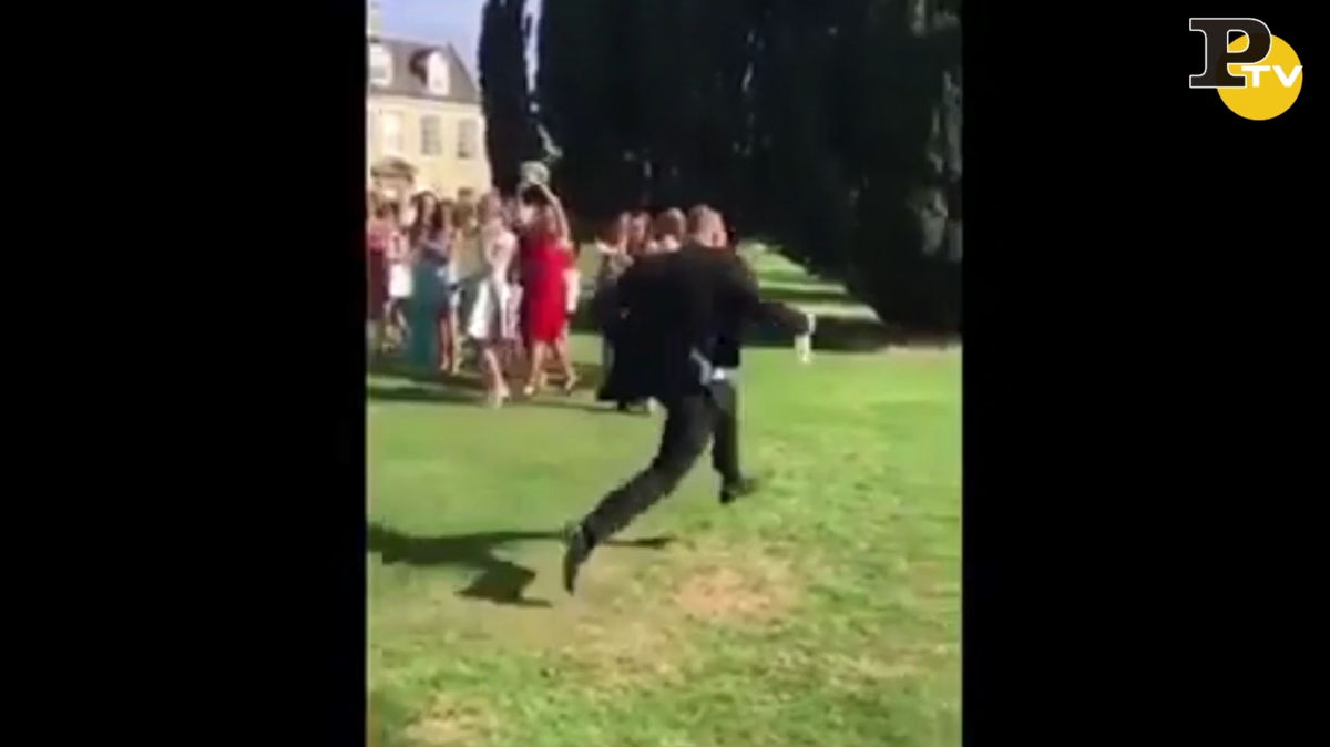 Questo è quello che succede in un comune matrimonio. La sposa lancia il bouquet che viene preso al volo da una damigella. La reazione del fidanzato di questa non è delle migliori. Mentre lei gioisce fra le altre amiche per essere riuscita ad afferrare il mazzo di fiori, di buon auspicio per un futuro e prossimo matrimonio, il suo fidanzato, che forse al matrimonio proprio non ci pensa e non lo vuole, inizia a correre a gambe levate, fugge dal matrimonio. Evidentemente a lui il matrimonio piace, ma solo i matrimonio degli altri (Youtube)