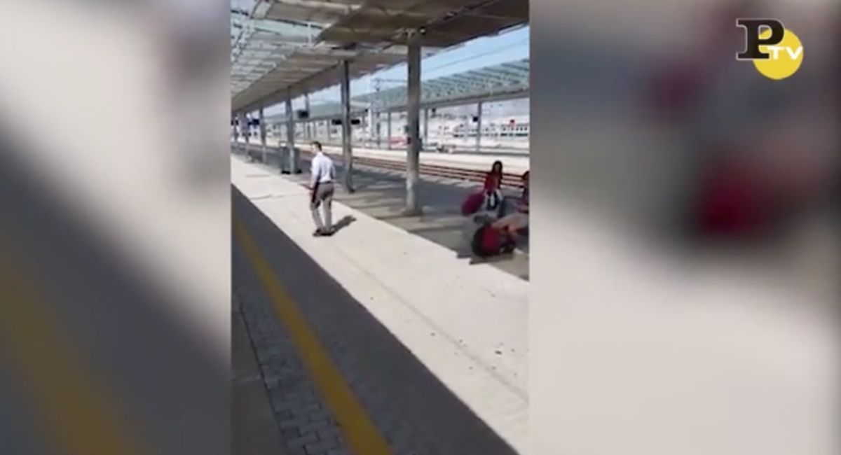 La polemica calcistica sugli arbitraggi pro Juventus arriva fino in una stazione dove un ragazzo scherza sul fischio di un capotreno