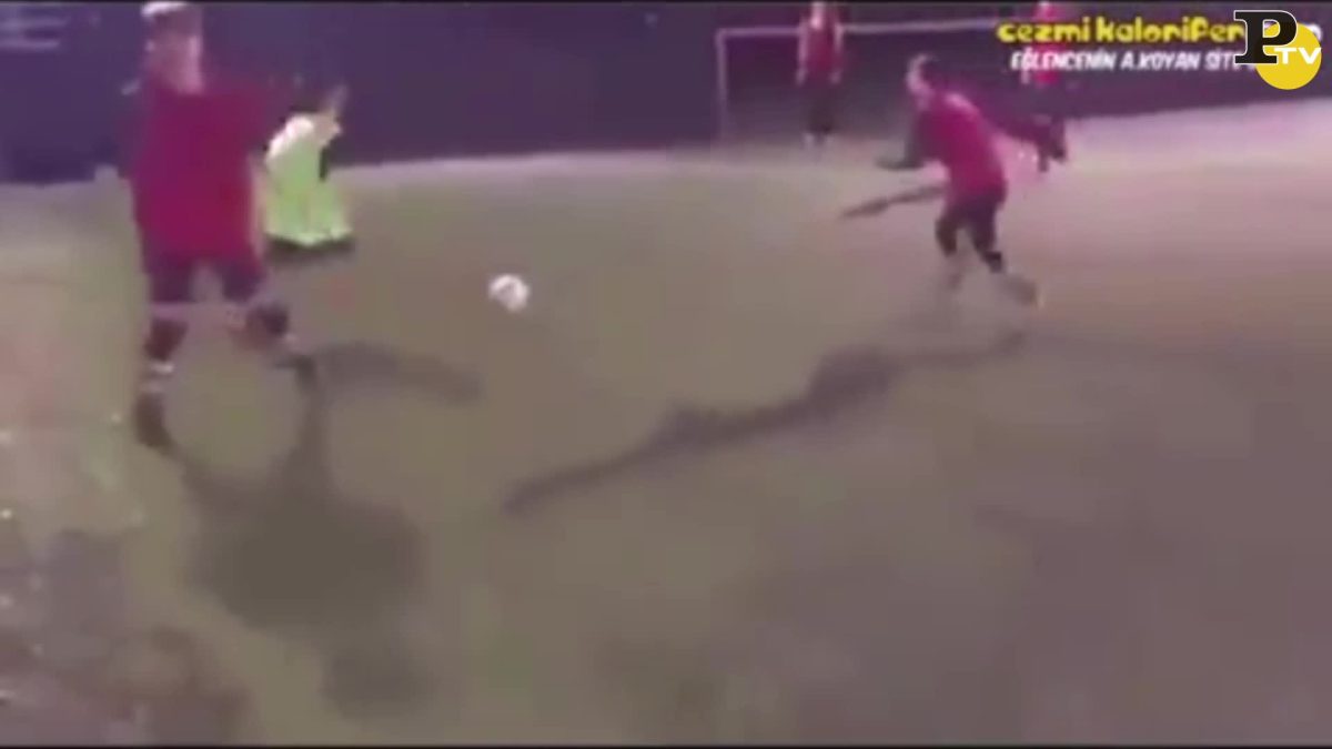 Durante una partita tra ragazzini, un bambino dribbla la palla tra le gambe del difensore, con un tunnel da vero campione. Una performance paragonabile ai tricks di Leo Messi.