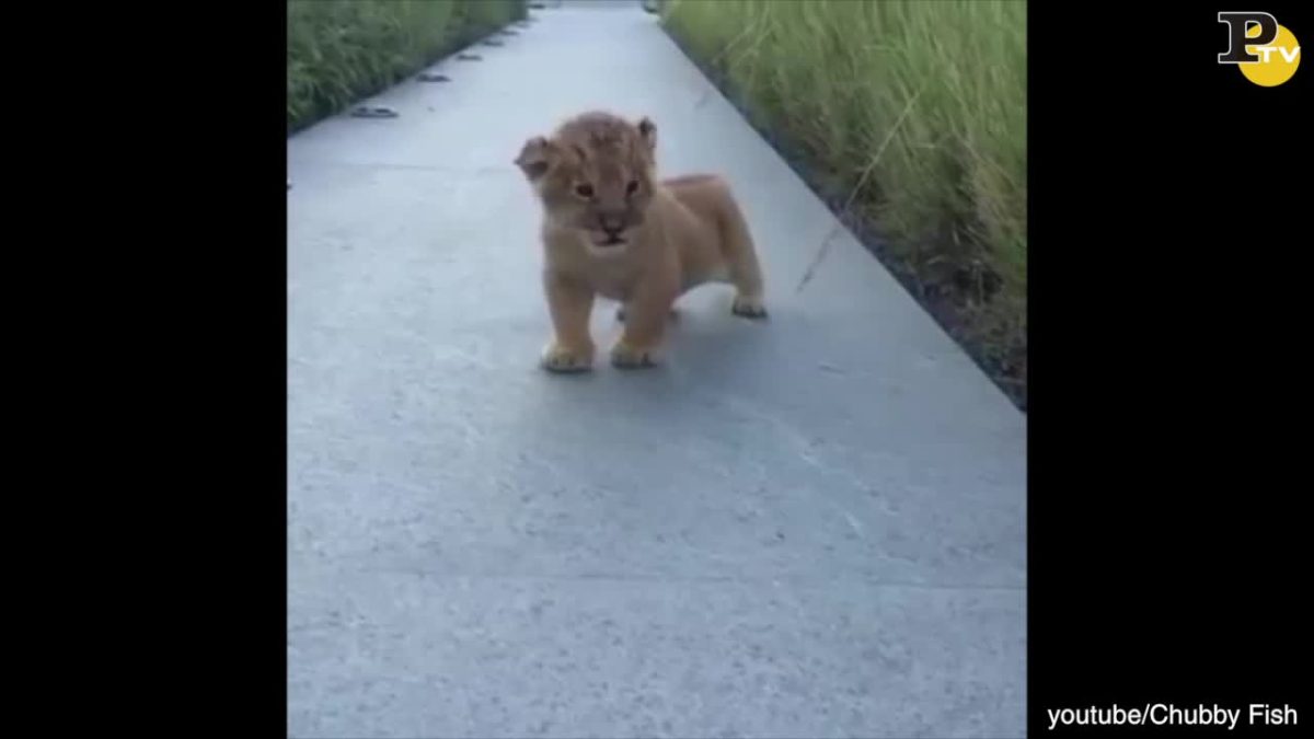 Ecco il primo ruggito di questo piccolo leone. Purtroppo per lui invece del classico “roar” il fatto di essere davvero un cucciolo fa uscire dalla sua bocca un suono davvero unico che invece di spaventare al massimo fa tenerezza.