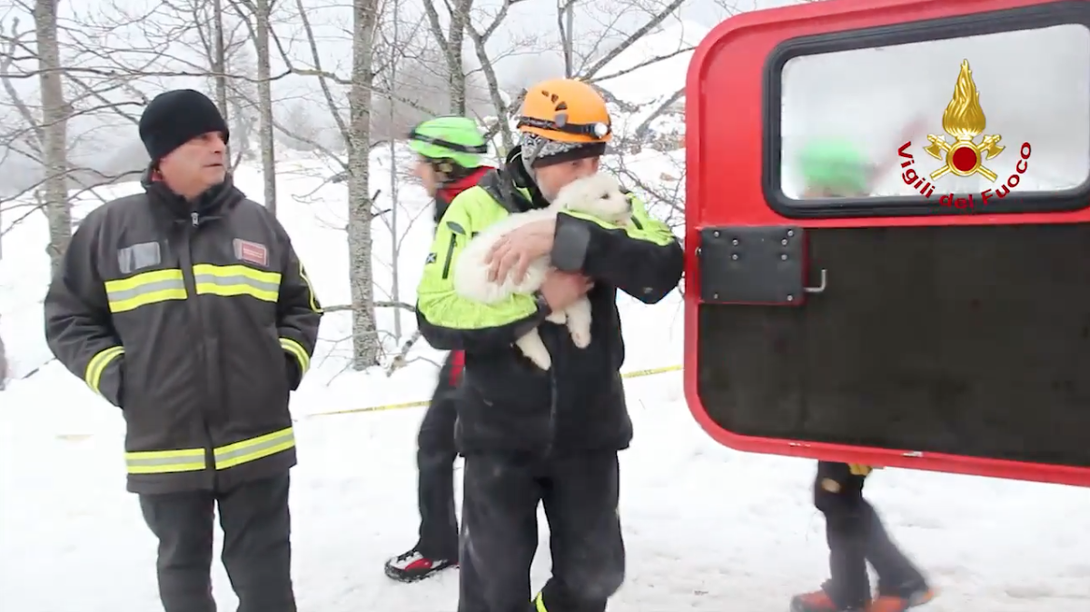 Il salvataggio dei tre cuccioli di cane dell’Hotel Rigopiano | video