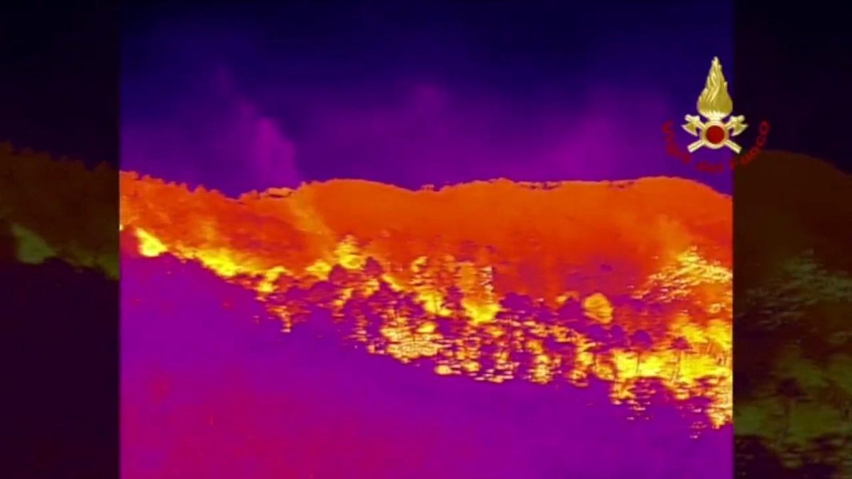 Le immagini riprese dai droni dell’intervento dei Vigili del Fuoco per cercare di mettere in sicurezza la vasta area toscana devastata dalle fiamme