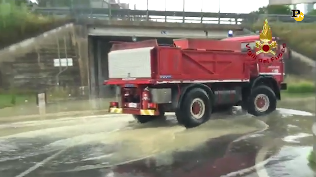Ad Ancona a seguito di una bomba d’acqua sono stati più di 40 gli interventi dei vigili del fuoco. Allagati diversi sottopassi, con alcune auto rimaste sommerse dall’acqua.