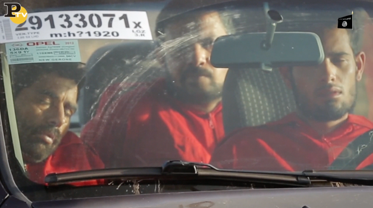 Il primo gruppo (3 uomini) vengono fatti salire a bordo di un auto, centrata da un RPG sparato da una decina di metri.