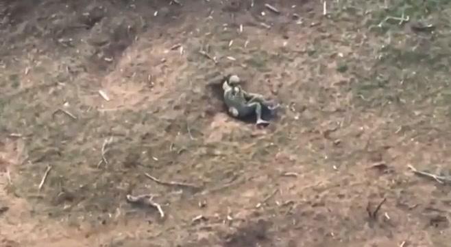 Un soldato russo del battaglione Wagner, isolato e accerchiato da militari ucraini, si fa il segno della croce prima della battaglia finale. Scena ripresa nella zona di Kherson (video tratto da Twitter)