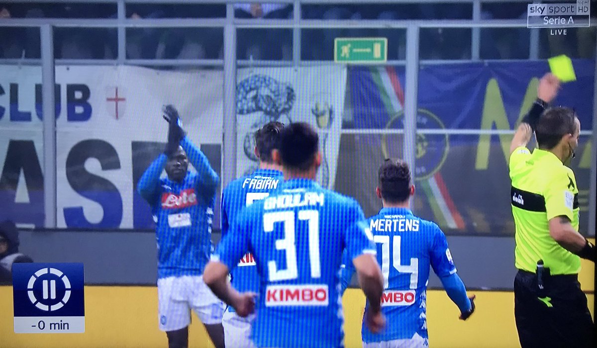 Ecco l’episodio che fa discutere in Inter-Napoli. Accade all’80’ quando Koulibaly viene prima ammonito per una trattenuta su Politano e poi espulso dopo aver applaudito verso l’arbitro Mazzoleni. Rosso contestato dal Napoli che ha denunciato il clima ostile per tutta la durata della gara da parte del pubblico nerazzurro, con cori discriminatori nei confronti di Napoli e dei napoletani e buuu razzisti indirizzati a Koulibaly.