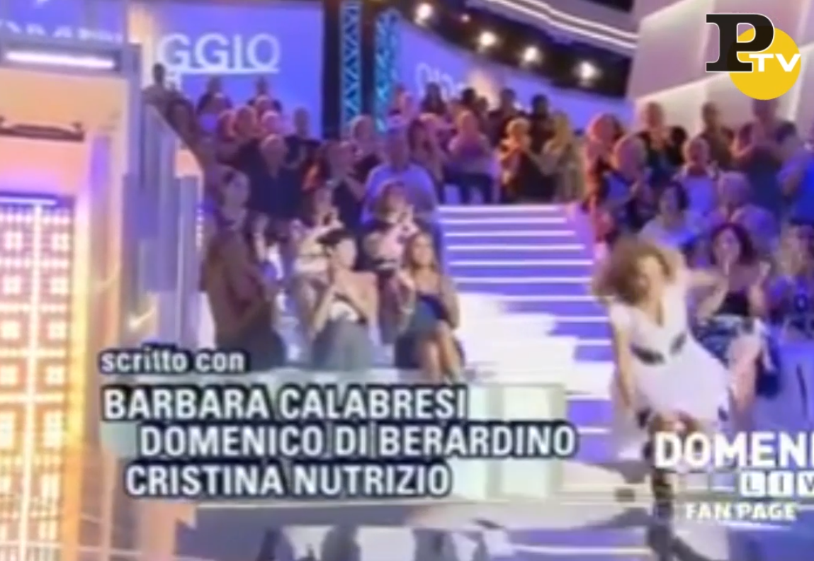 Scendendo le scale all’inizio della trasmissione la conduttrice è inciampata sui gradini ed è caduta rovinosamente a terra, in una scena che ha subito ricordato a tutti la recente caduta (diventata poi virale) della soubrette Lisa Fusco…