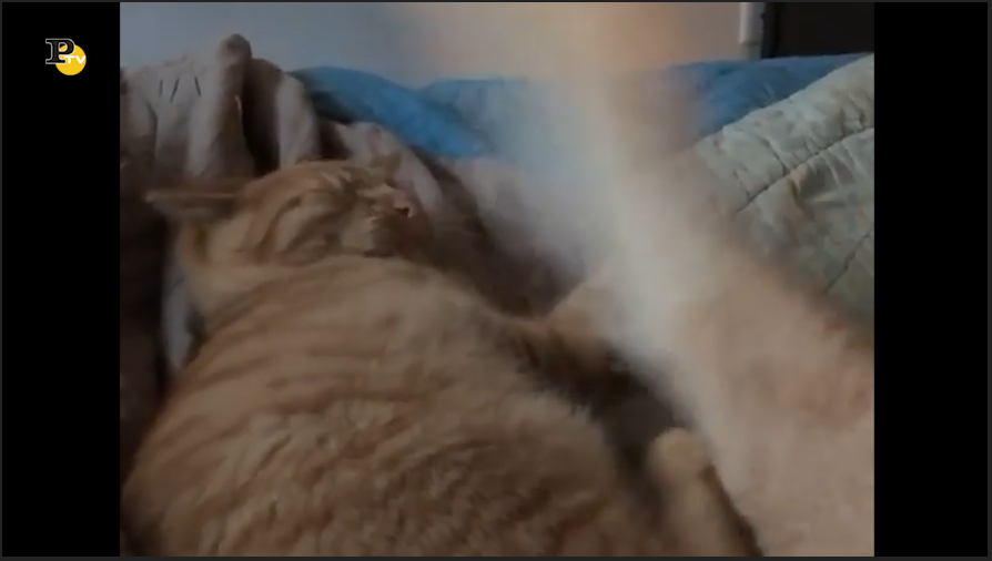 Video divertente di un gatto e un cane sdraiati vicini. Il micio vorrebbe riposare ma la coda del cane continua a disturbarlo… Come andrà a finire la storia?