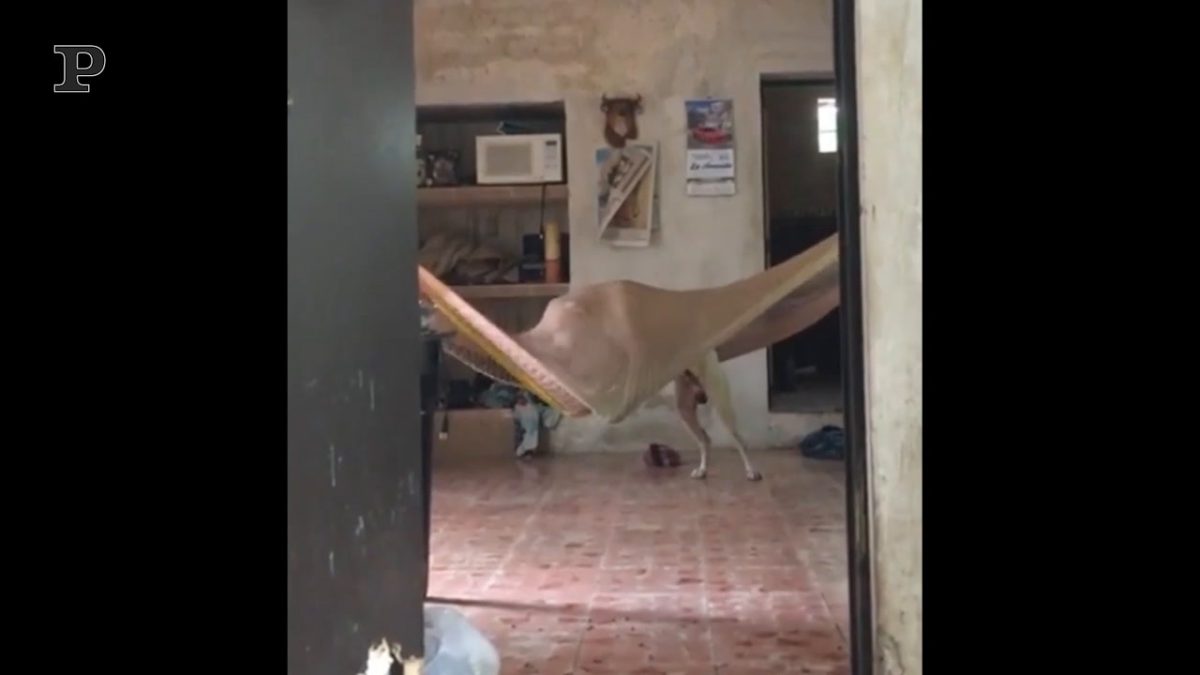 Guardate che fatica deve fare questo cane per potersi sdraiare tranquillo sull’amaca!