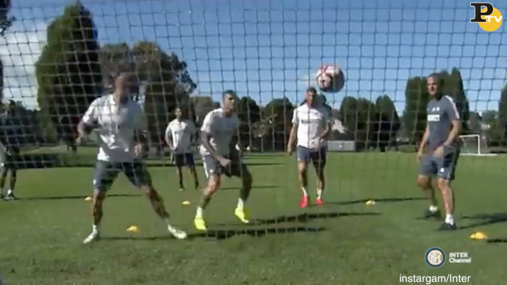L’Inter ha pubblicato sulla sua pagina di instagram il filmato dell’esercizio (o gioco) con il quale il neo allenatore Frank De Boer sfida i suoi alla fine di ogni allenamento. Il gioco è semplice. Bisogna colpire il pallone di piedi o di testa e mandarlo contro una rete metallica inclinata che rimanda la palla indietro quando sarà il giocatore seguente a doverlo colpire. Si va avanti così fino a che la palla non cade terra con conseguente eliminazione e punizione per chi ha commesso l’errore.