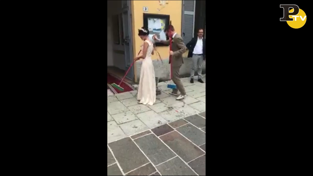E’ successo a Santa Maria Hoè, un piccolo paesino in provincia di Lecco che non conta più di 2mila abitanti. Due sposini tedeschi, appena usciti dal Comune dopo aver pronunciato il fatidico sì, si sono muniti di scope e palette per ripulire il marciapiede dal riso e dalle stelle filanti lanciati dai parenti per festeggiare. La scena è stata ripresa e postata su Facebook dal sindaco del paese, Efrem Brambilla. Una lezione di civiltà e senso civico che questi neo sposini hanno dato a tutti (Facebook)