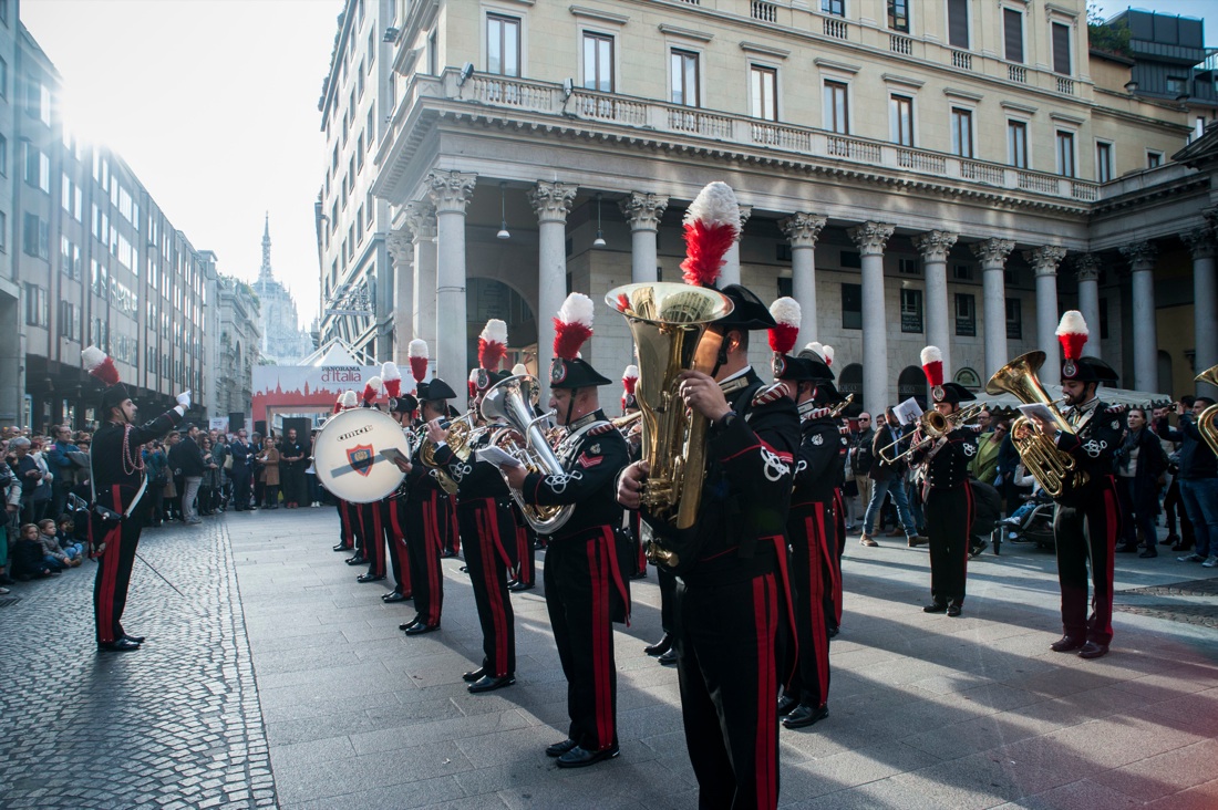 In occasione dell’inaugurazione della tappa di Milano di Panorama d’Italia, i carabinieri del terzo reggimento Lombardia hanno eseguito la fanfara.