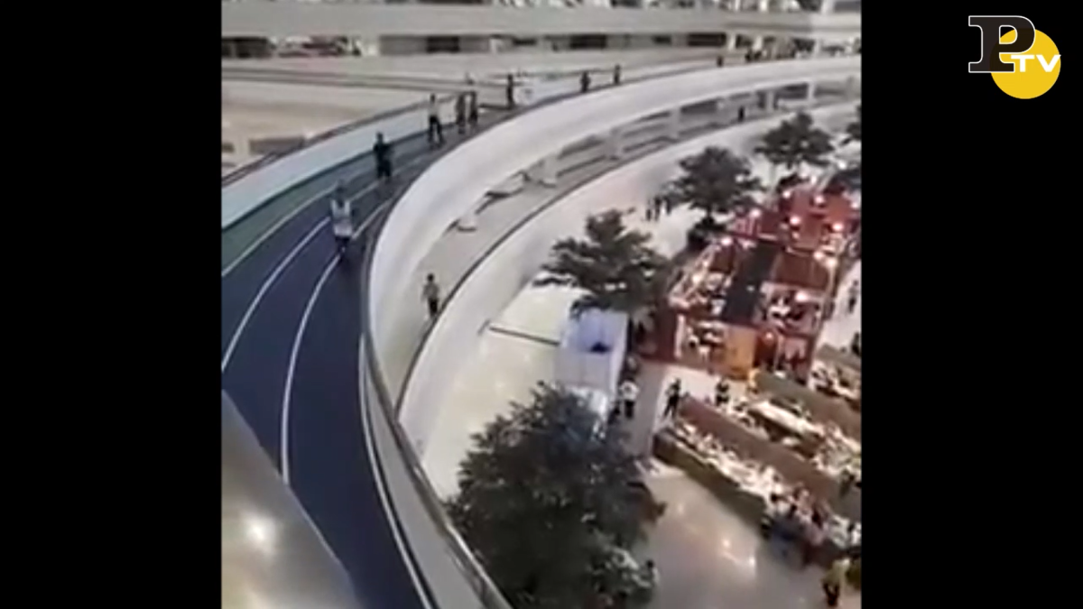 Arrivato l’inverno è l’ora di tornare a fare sport e mettersi in forma. Ecco perchè in molti si iscrivono in palestra, un ambiente chiuso, con musica e spogliatoi. Spesso però non c’è molto tempo, usciti da lavoro, per svolgere tutte le commissioni, per andare a fare sport e magari dover fare anche la spesa. Ecco la soluzione perfetta: correre direttamente nel Centro Commerciale. All’interno di questa gigantesca struttura infatti, la pista di atletica è costruita proprio sopra gli scaffali della spesa. In questo modo sarà più comodo, pratico e veloce andare a correre e fermarsi a fare shopping, tutto in una sola volta, tutto in un solo luogo (Youtube)