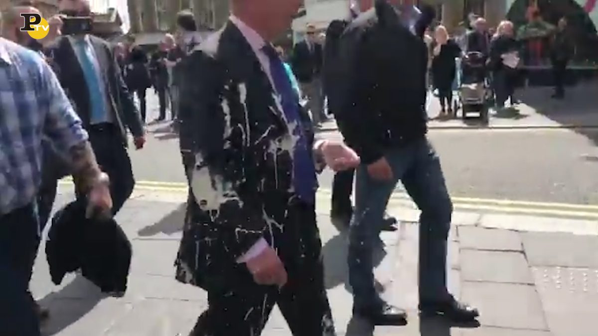 Un manifestante “no Brexit” ha gettato un frappé addosso a Nigel Farage, leader del Brexit Party, che si trovava a Newcastle, nel Regno Unito, per fare campagna elettorale in vista delle elezioni europee. A lanciare il frappé è stato Paul Crowther, un 32enne inglese, che ha detto di aver deciso di farlo dopo aver saputo che in città ci sarebbe stato un evento del Brexit Party, il nuovo partito antieuropeista di Farage.