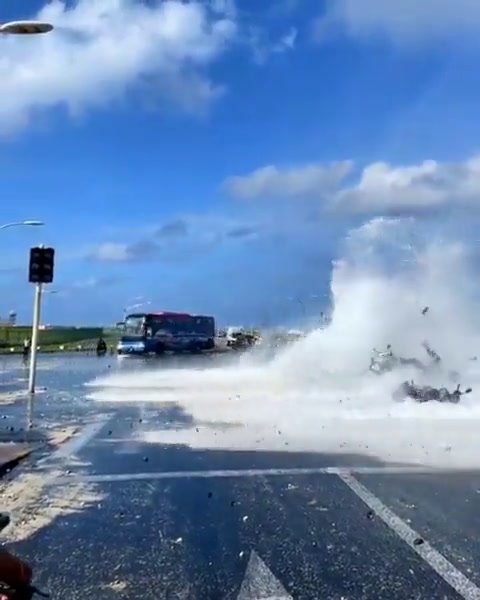 Una violenta mareggiata ha colpito poche ore fa le Maldive. Questa la scena provocata dalla furia del mare a pochi km dall’aeroporto internazionale di Malè con una dozzina di persone scaraventate a terra in mezzo all’incrocio con i propri scooter