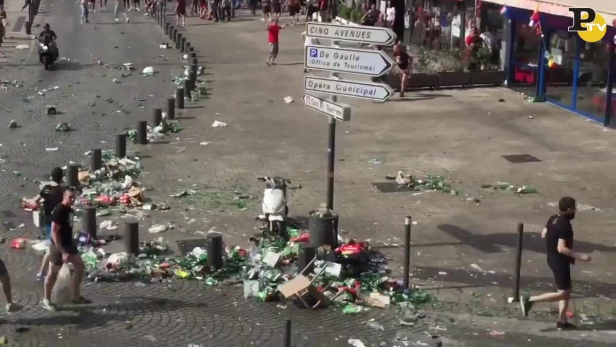 Marsiglia: ecco il video degli incidenti degli hooligans della Russia, un gruppo di 150-200 tifosi spesso con una maglietta nera uguale per tutti che, stando anche a quanto affermato dal Procuratore di Marsiglia, sarebbero ben organizzati, addestrati alla violenza ed arrivati a Marsiglia ed in Francia per Euro 2016 proprio per provocare e scatenare vere e proprie battaglie con i tifosi avversari e la Polizia.