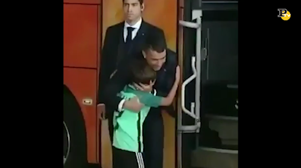 Un piccolo tifoso di Cristiano Ronaldo temeva di essere arrivato troppo tardi per incontrare il suo idolo in partenza con i compagni del Portogallo per i mondiali in Russia. Ma l’attaccante del Real Madrid ha bloccato la partenza del bus e ha abbracciato il ragazzino in lacrime, un sogno che diventa realtà.