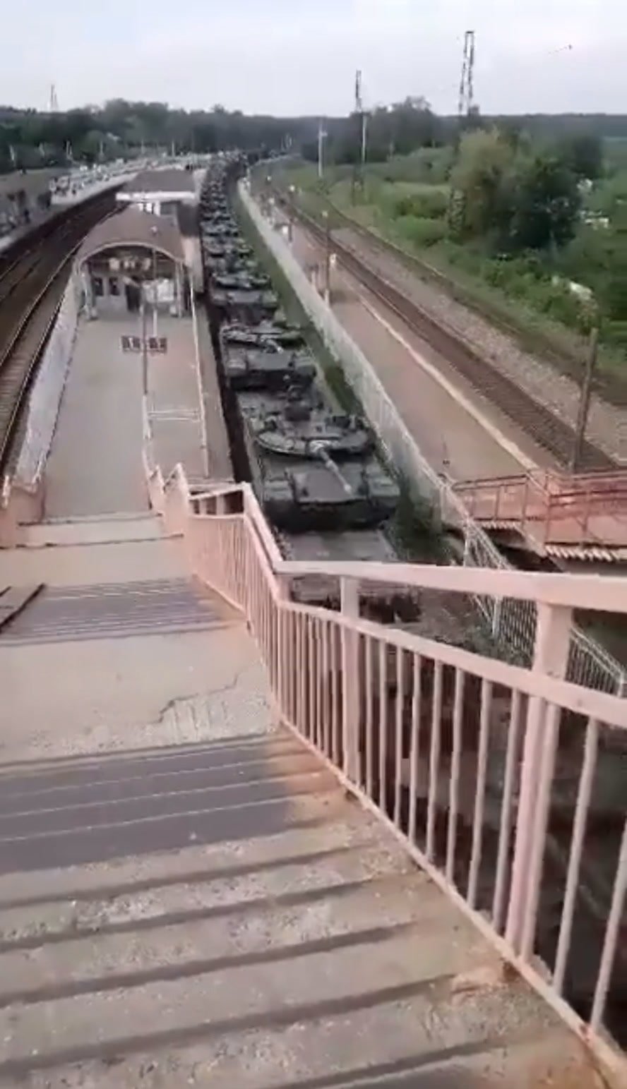 Un treno russo carico di carri armati T-80Bvm è diretto verso il fronte dell’Ucraina orientale