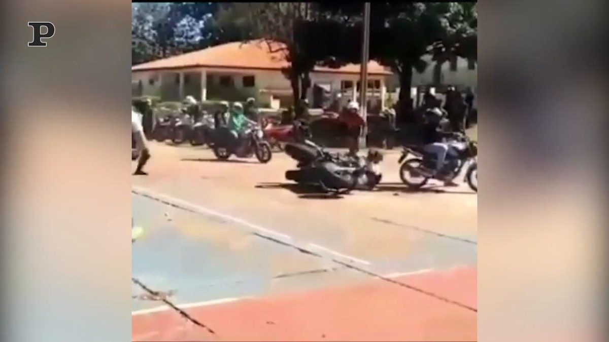 Il protagonista di questo video non è di certo un campione degli sport su due ruote: in fila con i suoi compagni, nel bel mezzo di un raduno, il motociclista decide di effettuare una manovra acrobatica, ma senza preoccuparsi delle conseguenze. Le immagini riprese lo ritraggono mentre impenna improvvisamente, finendo con il travolgere in pieno uno dei suoi compagni. Un vero colpo di genio!