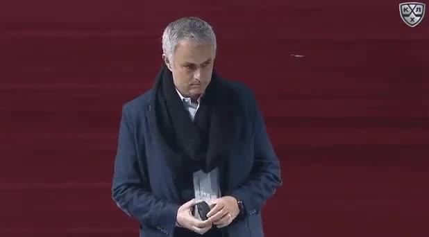 Disavventura per il tecnico portoghese che scivola dopo aver dato il via a una partita di hockey della KHL. E’ successo a San Pietroburgo e il video è diventato presto virale facendo il giro della Rete. Non un periodo fortunato per lo Special One che ha chiuso anzitempo la sua avventura sulla panchina del Manchester United.