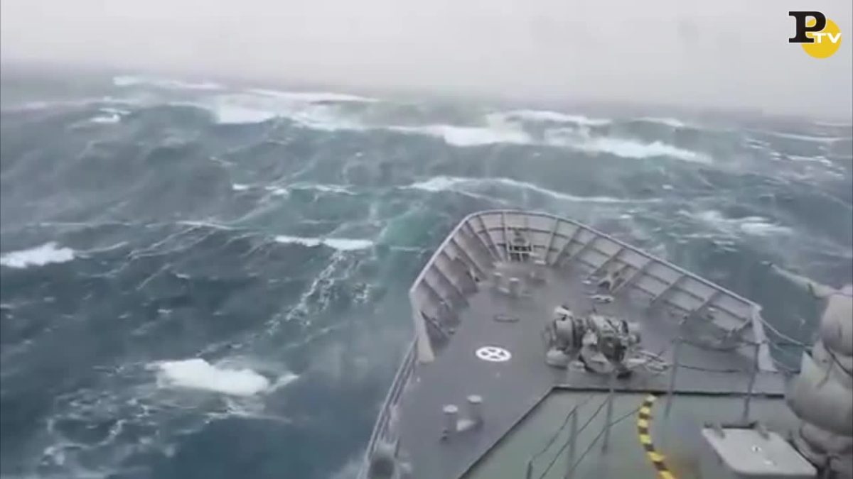 Un’onda alta più di venti metri che si avvicina e ti travolge, coprendo persino un’intera nave militare. Ecco le incredibili immagini che arrivano dal mare artico a sud della Nuova Zelanda dove la HMNZS Otago era impegnata in una normale operazione di pattugliamento. La zona era investita dal maltempo con raffiche di vento e mare in burrasca. Ad un certo punto la telecamera che si trova sul ponte di comando riprende i movimenti della nave su e giù da un’onda all’altra fino a quando non arriva l’onda maestra, sempre più alta e sempre più vicina, che ricopre l’intera nave.