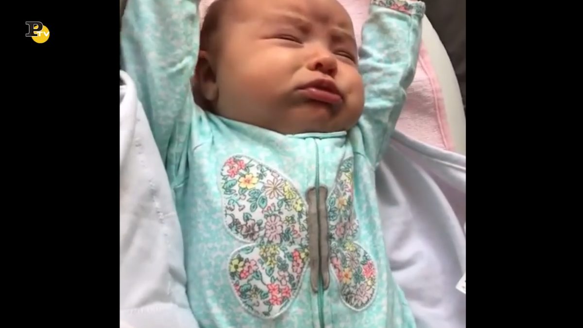 Che tenero questo neonato: si sta stiracchiando durante il risveglio. È proprio un momento dolce.