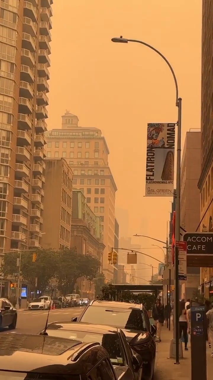 È una New York del tutto anomala quella che appare oggi, totalmente avvolta da una sottile nube rossa che le dà un aspetto incredibile. Evento dovuto agli incendi che stanno avvolgendo il Quebec, Canada, e che i venti hanno spinto fino alla Grande Mela.