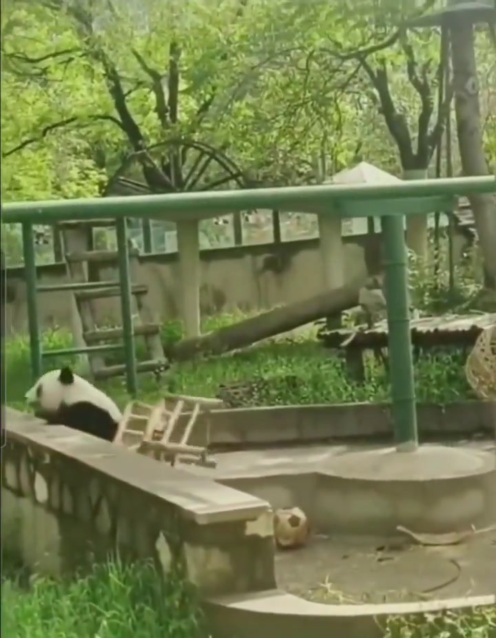 Tranquillità, natura, e a volte un po’ di sana sbadataggine. Nel video si vede un panda comodamente seduto su una sedia di bamboo capicollare dalla seduta, senza alcun apparente motivo e rialzarsi, senza problemi come se nulla fosse accaduto.