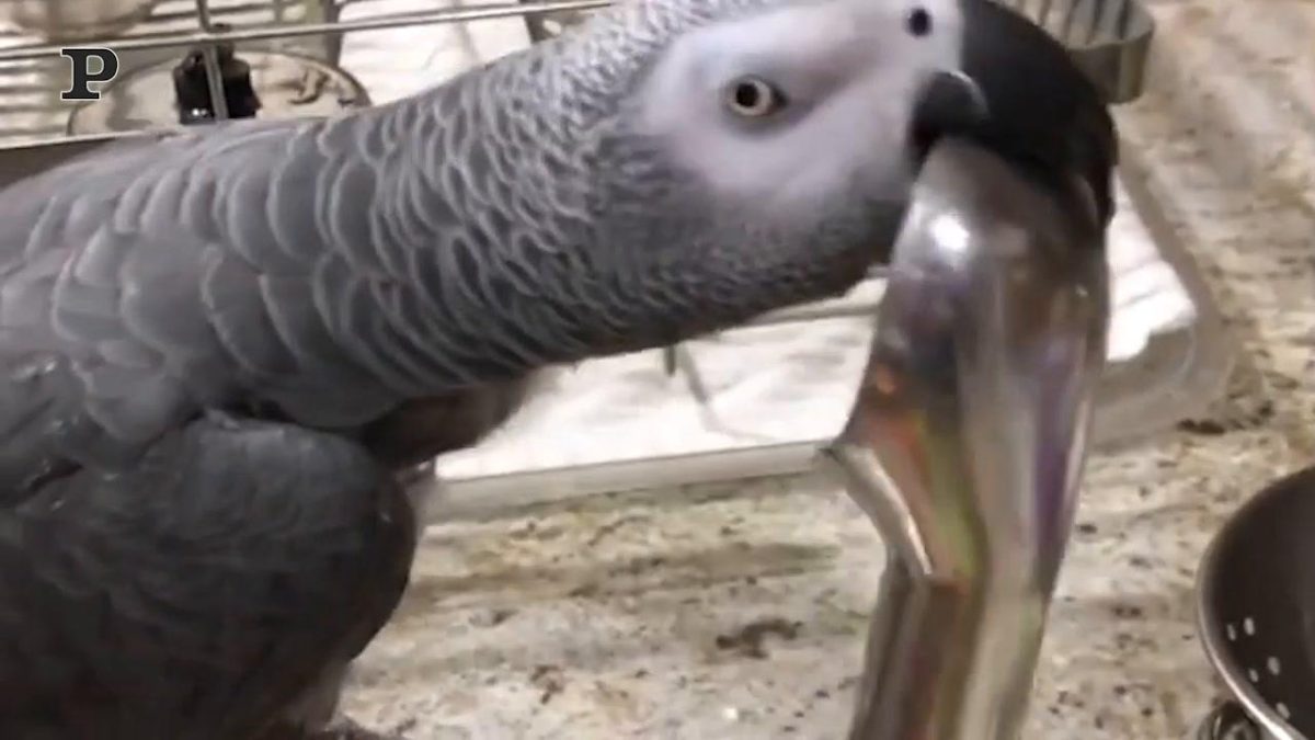 Questo pappagallino ha la stoffa da vero musicista: prende nel becco un cucchiaio di metallo ed inizia ad scuoterlo come farebbe un vero percussionista. Prima su, poi giù, l’abile pappagallo cerca di simulare il suono di un tamburo. E più lo agita e più si lascia trascinare dal ritmo incalzante dello strumento. Un vero talento!