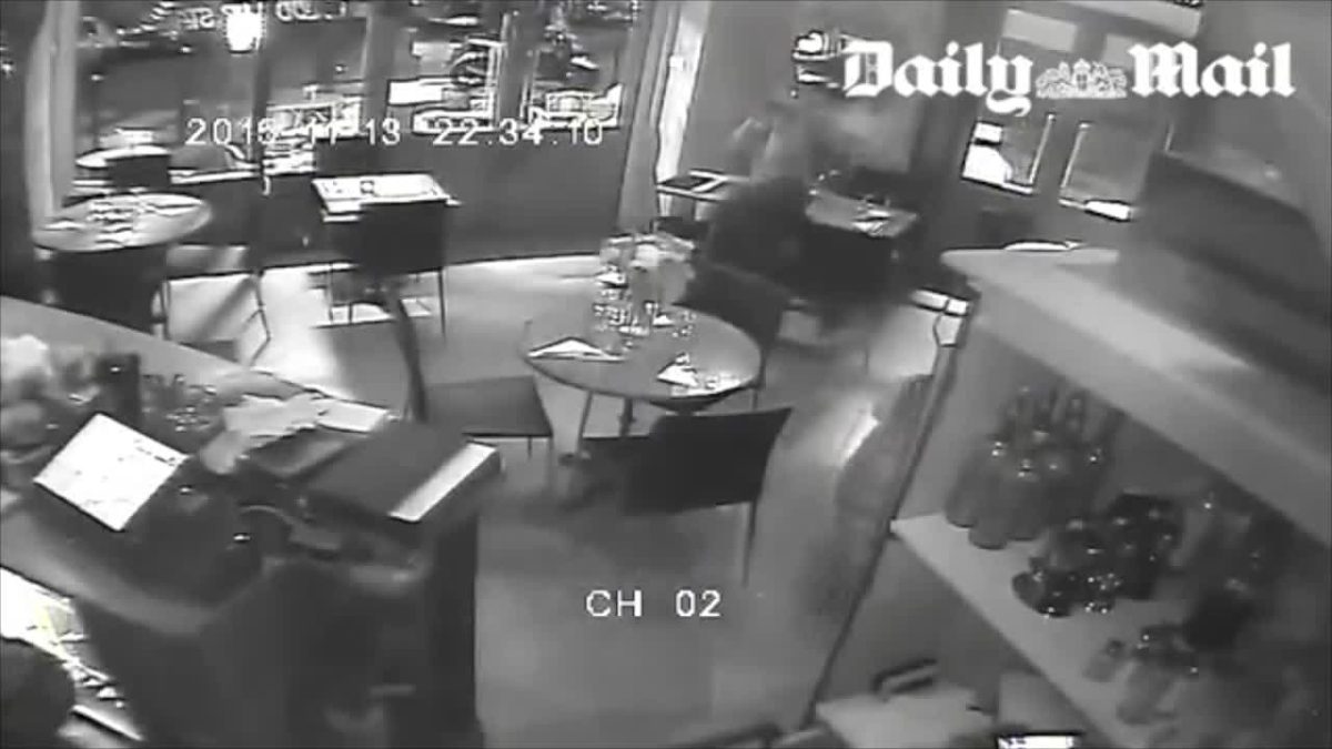 Venerdì 13 novembre, Parigi. Questo è uno dei ristoranti dove sono entrati in azione i terroristi dell’Isis. Le telecamere a circuito chiuso riprendono i terribili momenti dell’attacco. La quiete viene interrotta dagli spari. Le persone dietro il bancone e quelle all’interno del locale si gettano subito a terra. I proiettili distruggono tutto. E’ questione di secondi.