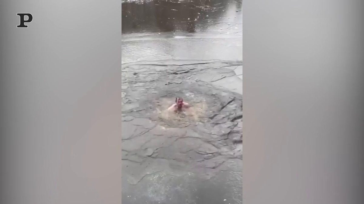 In mutande, l’uomo sfida il freddo di Amsterdam e pattina sul canale ghiacciato. Si esibisce in scivolate e prosegue il suo show semi nudo finché non arriva ad un punto in cui il ghiaccio è molto più sottile. Non se ne accorge e precipita nell’acqua gelida. Dopo pochi secondi risale in superficie. Sta bene!
