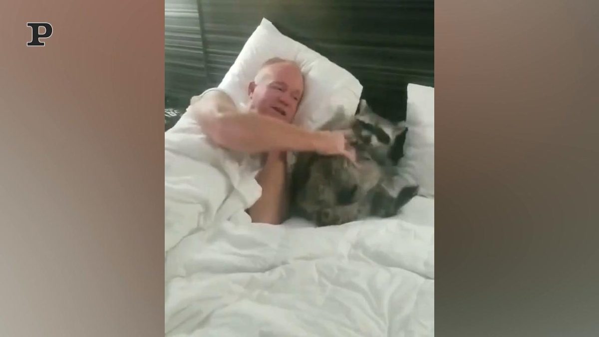 Il video, diventato ormai virale, ritrae un uomo che continua a indispettire un procione, che sta tentando in tutti i modi di dormire.