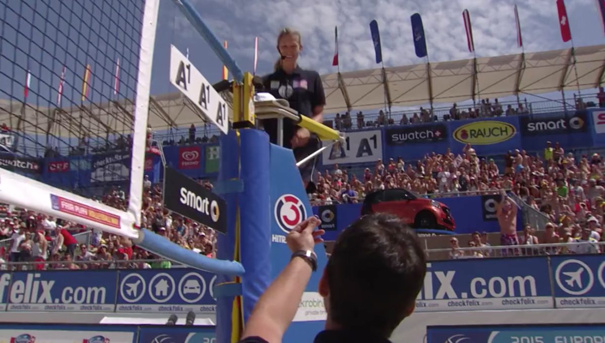 Alle Swatch Major Series di Klagenfurt, che assegnano il titolo di campione europeo del beach volley, il secondo arbitro Jonas Personeni fa la proposta al primo arbitro Nina Hobi. Proprio lì, dove si erano conosciuti otto anni prima..