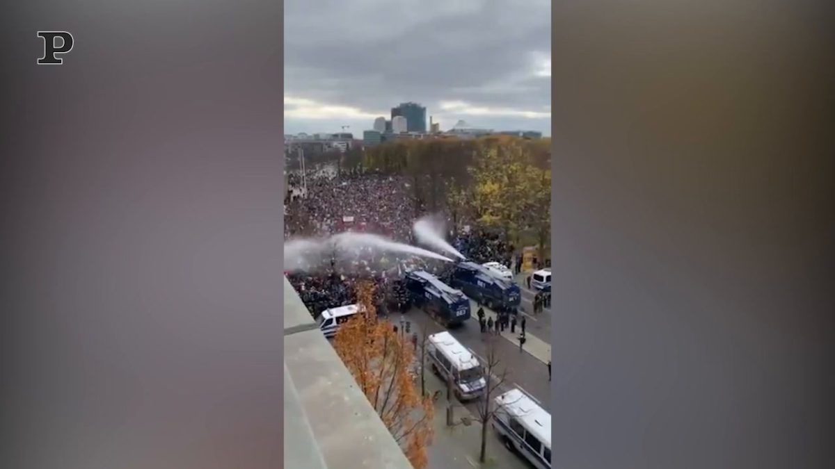 Scontri asprissimi a Berlino tra cittadini e governo in seguito alle nuove restrizioni. Sotto la Porta di Brandeburgo si sono radunate, senza rispettare l’obbligo di mascherina né il distanziamento, tra le cinquemila e le diecimila persone secondo le ricostruzioni delle Forze dell’Ordine. La Polizia, attaccata dai manifestanti con spray al peperoncino e lancio di sassi, bottiglie e petardi, ha fatto uso di idranti per disperdere la folla. Oltre 100 le persone fermate.