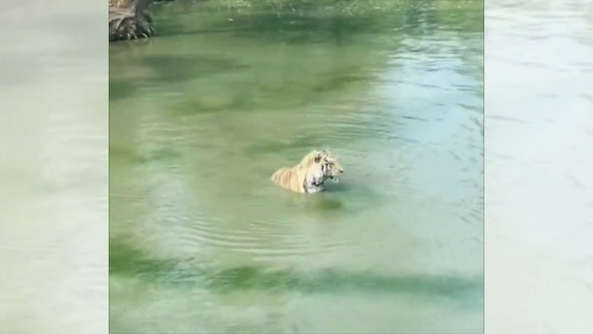 Acqua, una tigre pronta all’attacco. Ma quella che pensava fosse un’ignara paperetta si rivela invece più furba e puff! Scomparendo nelle acqua si salva, letteralmente, le penne.