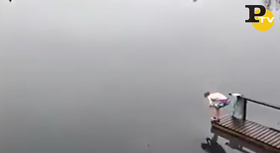 Questo ragazzo riesce a tradire le aspettative di tutti. Con una temperatura che sicuramente è sotto lo zero infatti, lui si presenta in costume e asciugamano sul porticciolo su di un lago e fa per tuffarsi nell’acqua. già la cosa sarebbe abbastanza folle così. Ma se osserviamo bene, il fenomeno ha ai piedi delle scarpe da ginnastica. Infatti nel momento in cui sembra coordinarsi e prepararsi al tuffo nelle gelide acque in realtà sui lancia in una corsa frenetica e attraversa tutta la superficie ghiacciata da una parte all’atra (Facebook)