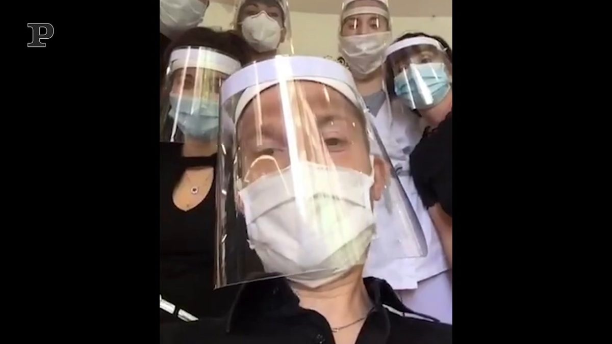 I parrucchieri di questo salone, con mascherina e visiera protettiva, si fanno coraggio per il primo giorno di apertura dopo due mesi di lockdown. “E’ lunedì 18 maggio, questa è la prima squadra di lavoro e con l’eleganza che contraddistingue il nostro marchio da sempre, ci tenevamo a dire: Daje tutta!”
