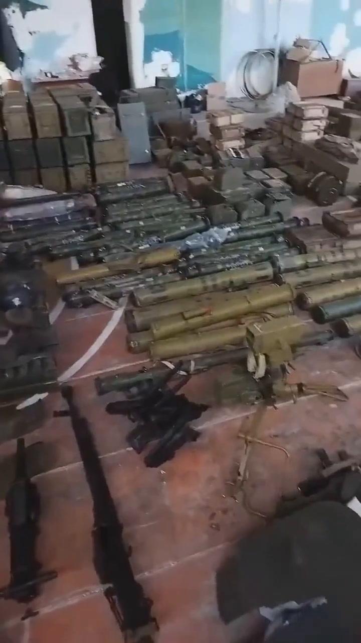 Da Izyum arrivano immagini che dimostrano la ritirata dell’esercito russo. Questo infatti è un deposito di munizioni, fornito di ogni genere di armamentario (munizioni, razzi anticarro, missili, mitragliatrici, bombe a mano e mine) lasciato in fretta e furia e di cui si sono subito impossessati i soldati di Kiev.