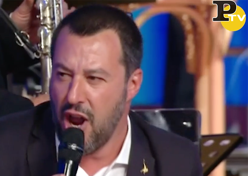 Matteo Salvini al Maurizio Costanzo Show in versione canterina. Il ministro dell’Interno non si è sottratto anche a esibizioni leggere nell’ospitata nello storico programma di Canale 5. L’esibizione, che lo ha visto interpretare ‘Albachiara‘ di Vasco ha coinvolto anche Briatore, Rudi Zerby, Mario Giordano, Giulia De Lelli, Briga, Diana del Bufalo e Enrico Papi, che non hanno aspettato a riprendere la scena con i loro smartphone (Witty)