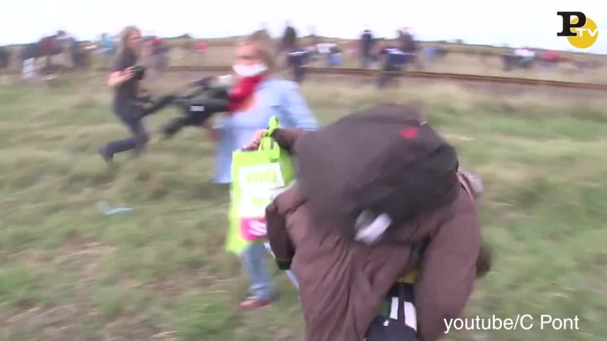 Da youtube ecco un nuovo filmato che racconta la terribile e drammatica scena della reporter ungherese che fa apposta lo sgambetto ad un uomo, un profugo siriano che stava cercando di superare il blocco della polizia assieme al figlio di pochi anni che portava in braccio per arrivare in Germania: Una storia che ha indignato il mondo e costretto la televisione a licenziare la sua reporter.
