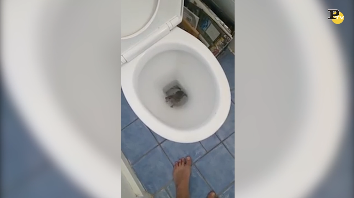 Deve essere stata una sorpresa non molto gradita quella che si è trovata davanti questa donna quando ha tirato lo sciacquone. All’improvviso è spuntato dal water un grosso topo che, risalendo i tubi di scarico, è riuscito a saltare fuori dal wc.