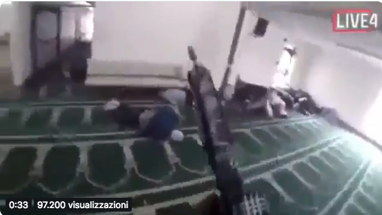 La diretta video dell’assalto continua su facebook (noi abbiamo deciso di non mostrarla) per altri 17 minuti con il killer che colpisce senza pietà anche uomini a terra.