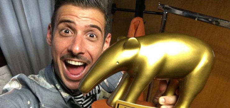 Durante la puntata di Striscia la Notizia Francesco Gabbani riceve il Tapiro d’Oro da Valerio Staffelli dopo il sesto posto all’Eurovision 2017